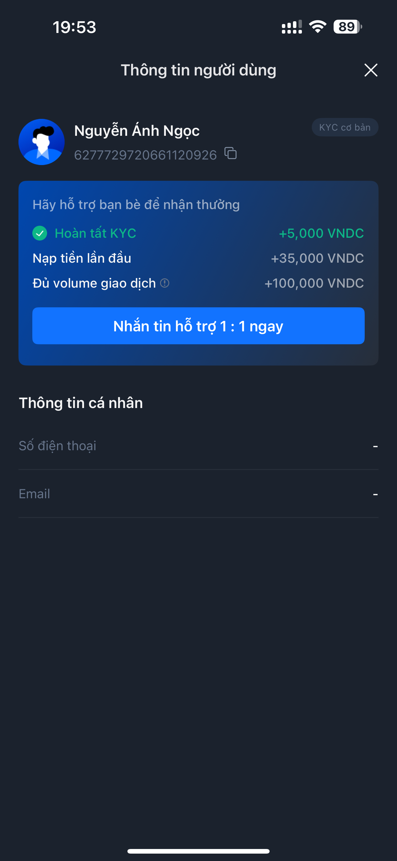 Sau khi KYC thành công. Vui lòng cung cấp tài khoản Onus đã đăng ký tại đây (chụp ảnh nhé)